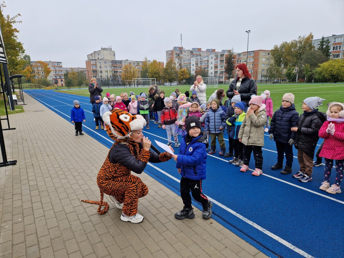 Spalio 9 d. dieną Šiaulių lopšelio-darželio „Eglutė“ grupės „Kleviukai“, „Bitutės“, „Kaštoniukai“, „Riešutėliai“ ir „Žiogeliai“ dalyvavo Respublikinėje akcijoje „Mažoji mylia - 2025”, skirtoje paminėti kūno kultūros ir sporto dieną. Nepabūgę apniukusio oro, sportiškai ir linksmai nusiteikę dalyviai susirinko darželio kieme, kur juos pasitiko Tigriukas. Sustoję į koloną, visi iškeliavo į naują, didelį Gytarių progimnazijos stadioną, kuriame keturmečių ir penkiamečių grupių bendruomenės kartu smagiai pasimankštino bei atliko apšilimo pratimus. Pasiruošę mažosios mylios bėgimui, akcijos dalyviai, skanduodami skanduotę „Bėgam mylią mes kartu...“, linksmai įveikė 250 metrų trasą. Renginį vainikavo grupių apdovanojimai dalyvių diplomais.